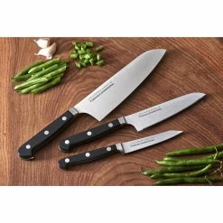 - Set includes 4-inch Paring/Utility Knife, 5.5-inch Serrated Prep Knife, and 7-inchΒ Cook’s Knife
