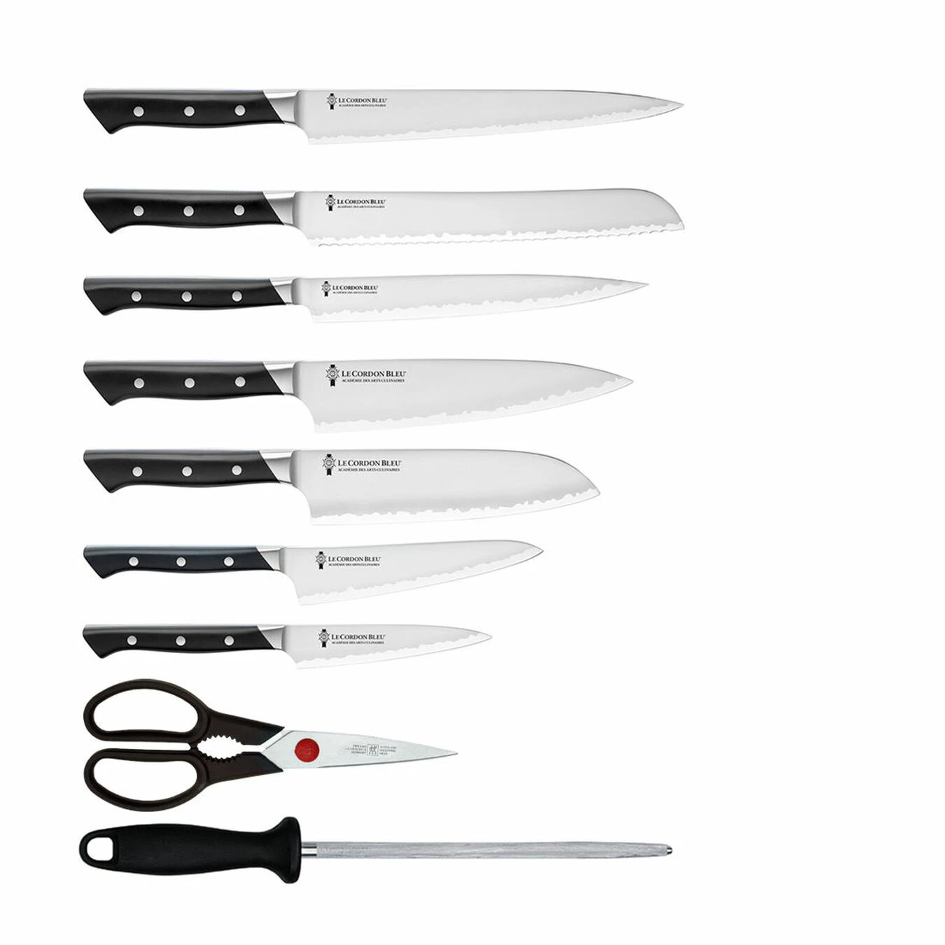 The ZWILLING Diplome knife series was developed in collaboration with the world-famous Le Cordon Bleu culinary institute to train top chefs. As first-class cutting implements are prerequisite for first-class work in the kitchen, the knives have a Japanese cutting edge to meet the highest demands. The blade with its Honbazuke edge is made of a very hard FC61 steel, while the easy-care plastic handle seamlessly joins the blade. The traditional 3-rivet design literally gives the knives the finishing touch. The ZWILLING Diplome Le Cordon Bleu knife series features knives crafted by the ZWILLING Seki, Japan factory, combining German technology and manufacturing expertise with Japanese blade craftsmanship and its technical ingenuity.