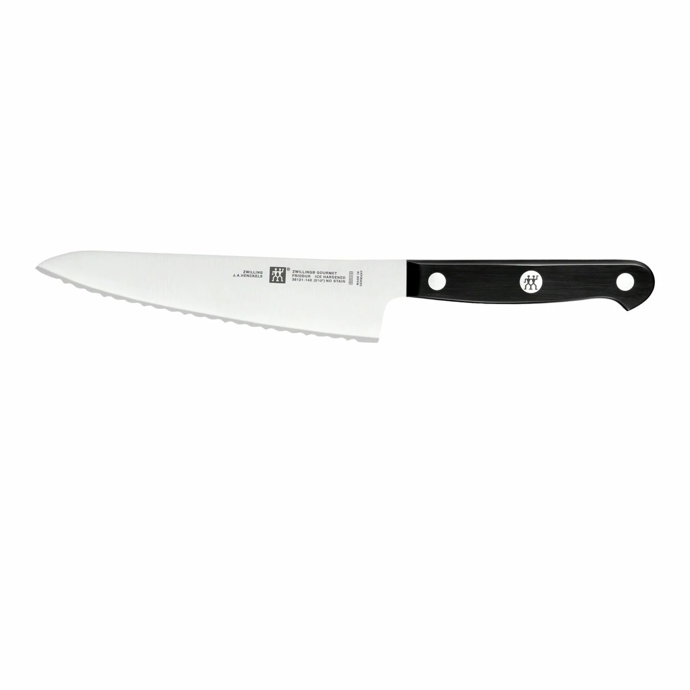 The premium cutlery pioneer ZWILLING J.A. Henckels has been crafting notable knives since 1731. Respected as an innovator in the industry, the company remains true to its roots: a strong commitment to quality and excellence.ZWILLING Gourmet is the go-to knife for home chefs eager for their everyday knife to be exceptional. The single-piece, precision-stamped blade construction is lighter than forged knives, allowing for maximum maneuverability.Proudly crafted in Germany, the knives are made of special-formula steel that has been perfected for over 285 years. Combined with ZWILLING’s signature ice-hardening technique, the blades are harder, sharper, they will not stain or chip and they retain their sharpness longer.The ergonomic, triple-riveted handle ensures fatigue-free cutting. Experience the comfort, durability, and sharpness of ZWILLING Gourmet.