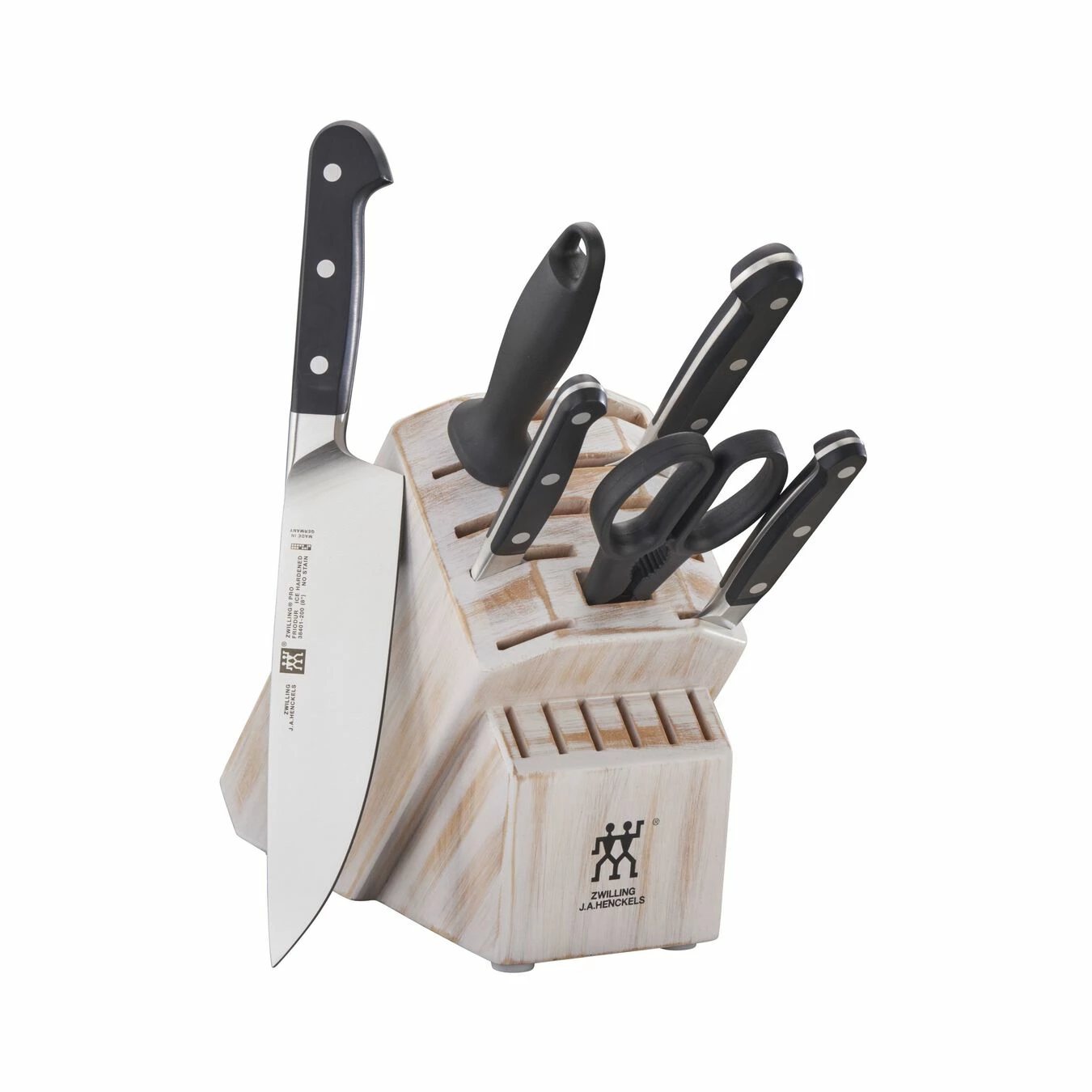 - Set includes 4″ Paring Knife, 5.5″ Prep Knife, 8″ Bread Knife, 8″ Chef’s Knife, TWIN Shears, TWIN Sharpening Steel, and 16 Slot Hardwood Block