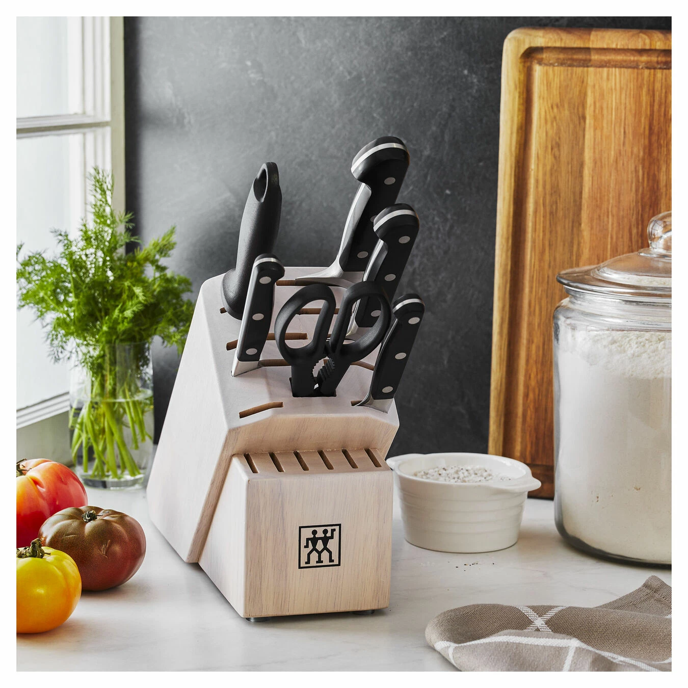 - Set includes 4″ Paring Knife, 5.5″ Prep Knife, 8″ Bread Knife, 8″ Chef’s Knife, TWIN Shears, TWIN Sharpening Steel, and 16 Slot Hardwood Block
