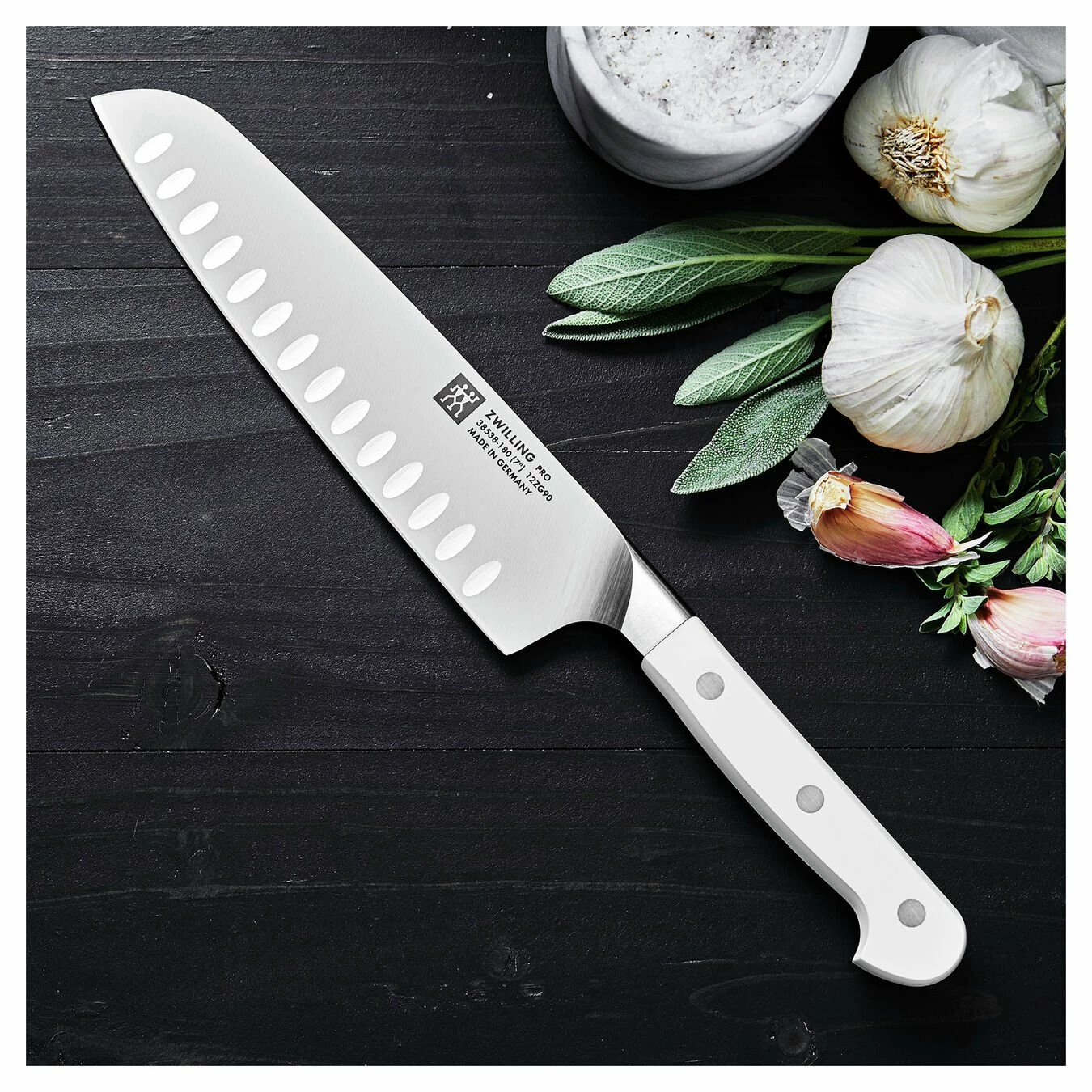 ZWILLING Pro, the most user-friendly knife on the market, is now available with elegant matte white handles. ZWILLING Pro Le Blanc boasts a unique curved bolster that acts as an extension of the hand, supporting the professional pinch grip, with thumb and index finger on the blade, for safe cutting and less fatigue. The blade was designed with a broad curve in the front to facilitate the rocking motion of Western cutting, while the straight back is ideal for the Asian chopping motion. The full length of the blade can be used when cutting and can be sharpened from bolster to tip.