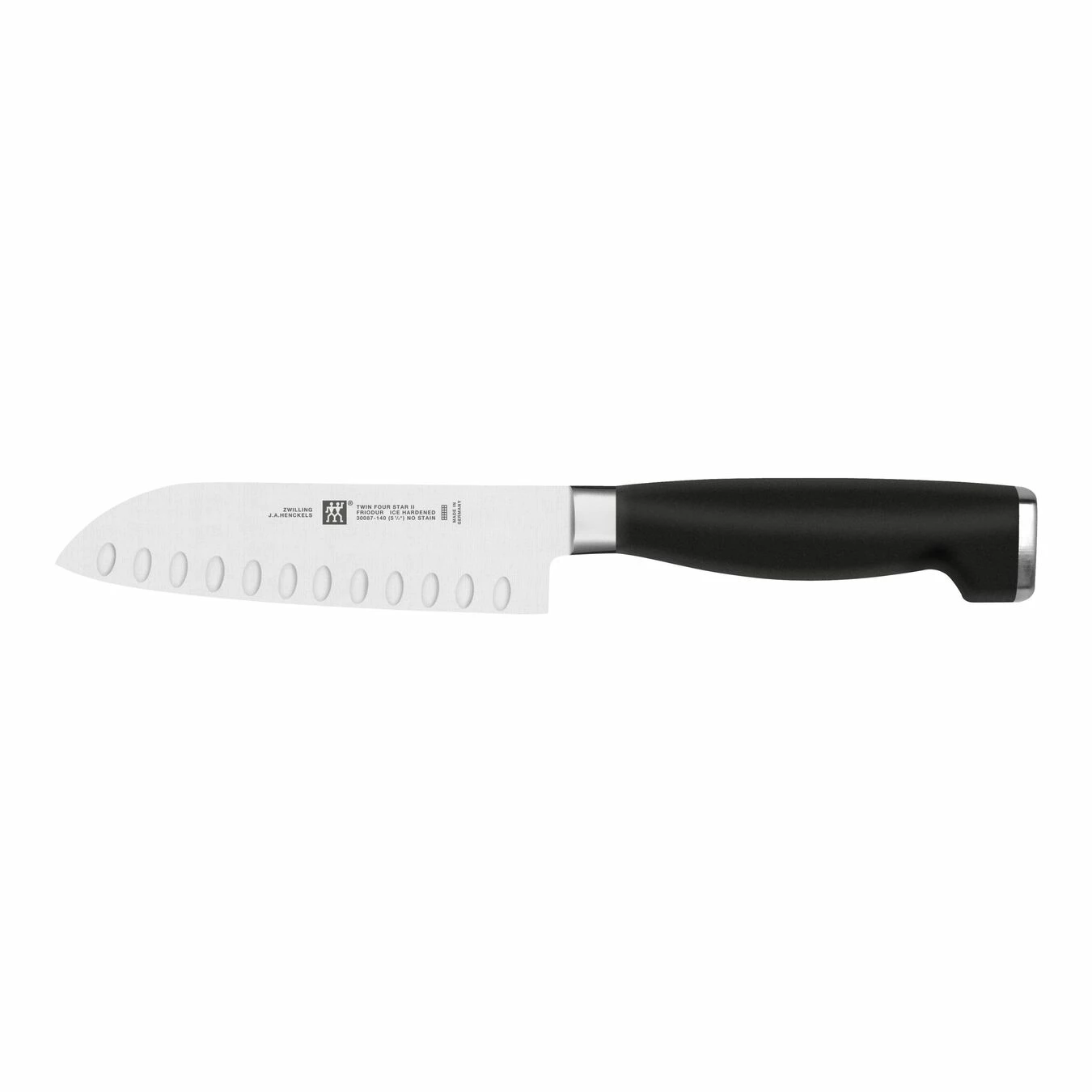 Includes 3-inch paring, 5-inch serrated utility, 5-inch hollow edge santoku, 8-inch chef’s, kitchen shears, 9-inch sharpening steel, and 16-slot wood block with steak knife slots